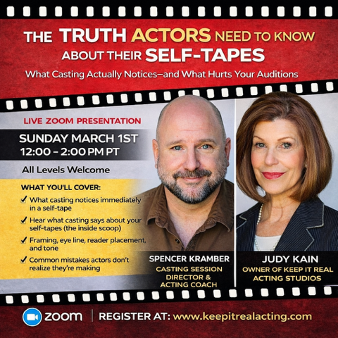 Are you getting auditions and not booking? Sign up for an Audition Audit! Judy will watch your recent tapes and discuss with you how to turn your auditions into bookings.